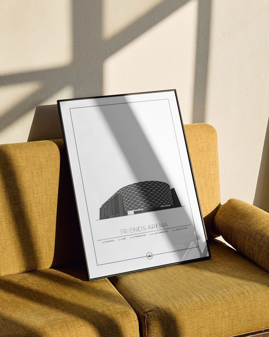 Vi skapar posters och brickor med grafiska motiv av byggnader, städer och platser som betyder något – från Friends Arena till Brooklyn Bridge och din egen hemstad. Stilren nordisk form, hög kvalitet och en tydlig tanke: att låta dina väggar berätta din historia.
